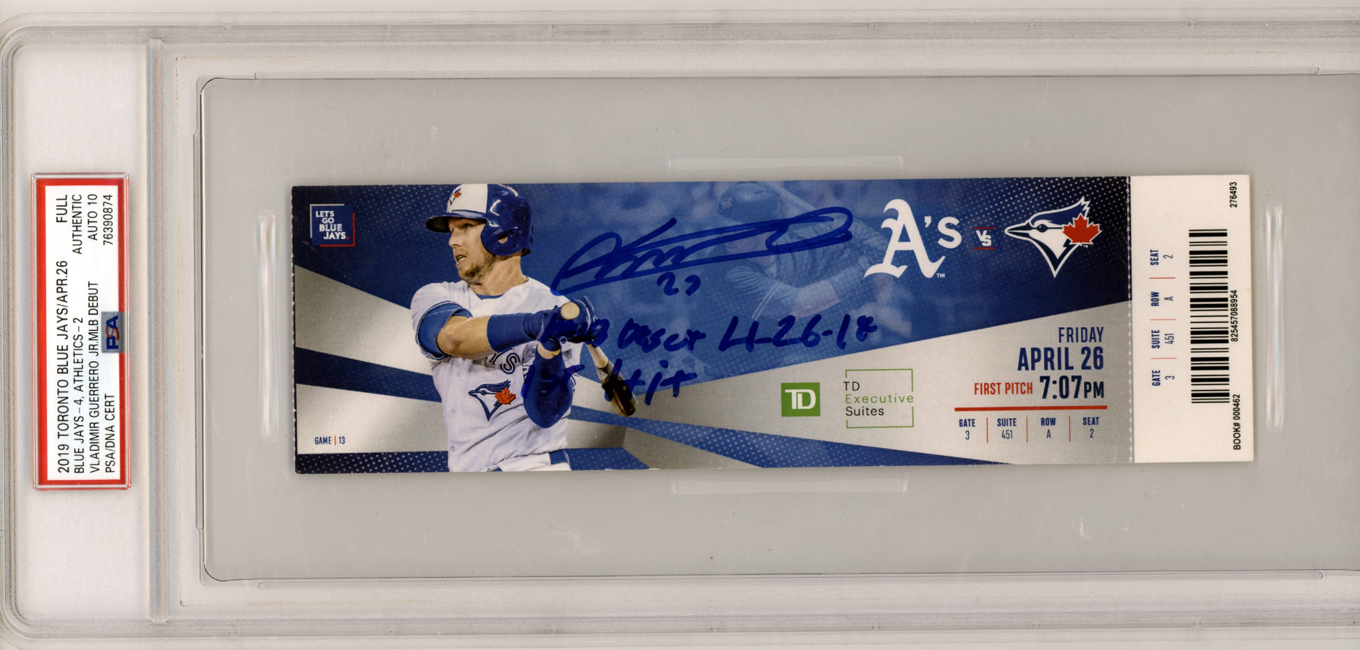 Vladimir Guerrero Jr. Signed MLB Debut & First Hit Full Ticket 2 Ins PSA 10 Auto